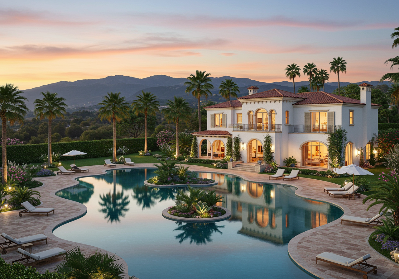 Envisioned as a sanctuary for fine furnishings and contemporary art, Villa de Angeli spans an impressive 22,222 square feet across 3 acres of pristine landscape. From the moment you approach one of the two gated entries, you're enveloped in a world of lush greenery and opulent tranquility, setting the stage for the splendor that lies within.