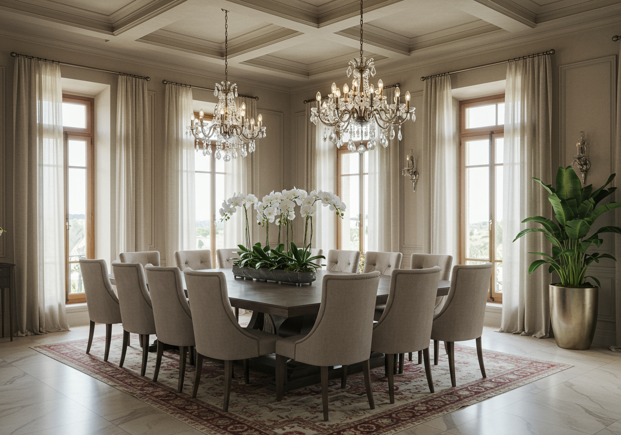 Inside, Villa de Angeli unfolds like a work of art, with museum-quality rooms boasting soaring ceilings, carefully curated materials, and a seamless flow that effortlessly balances expansiveness with intimacy. Honed marble floors anchor the space, while crystal chandeliers cast a soft glow over every corner, and solid wood beams adorned with intricate carvings add a touch of Old-World charm.