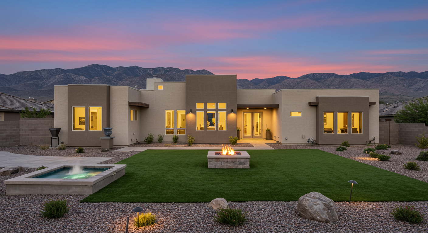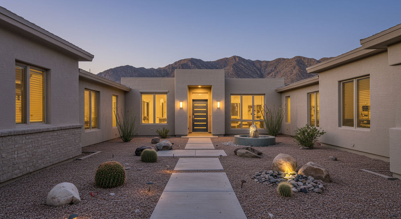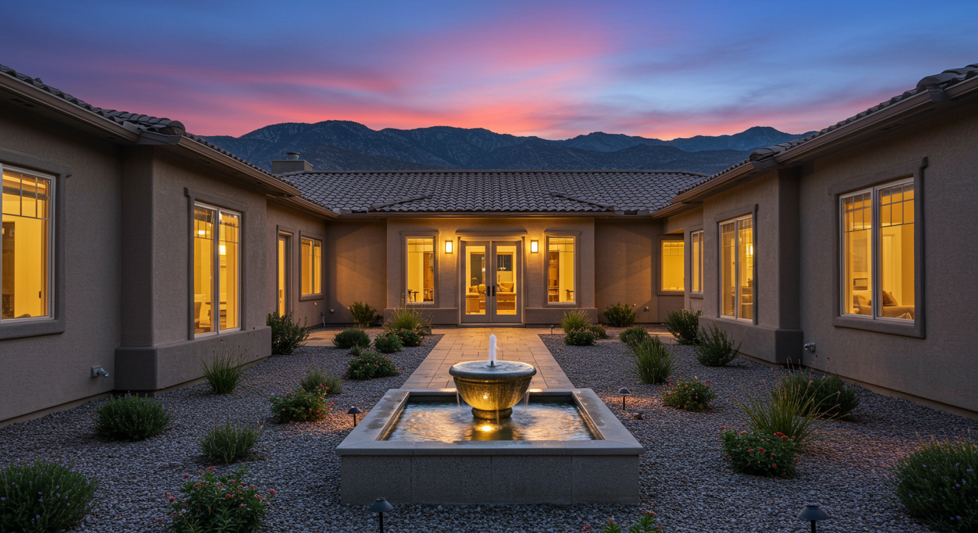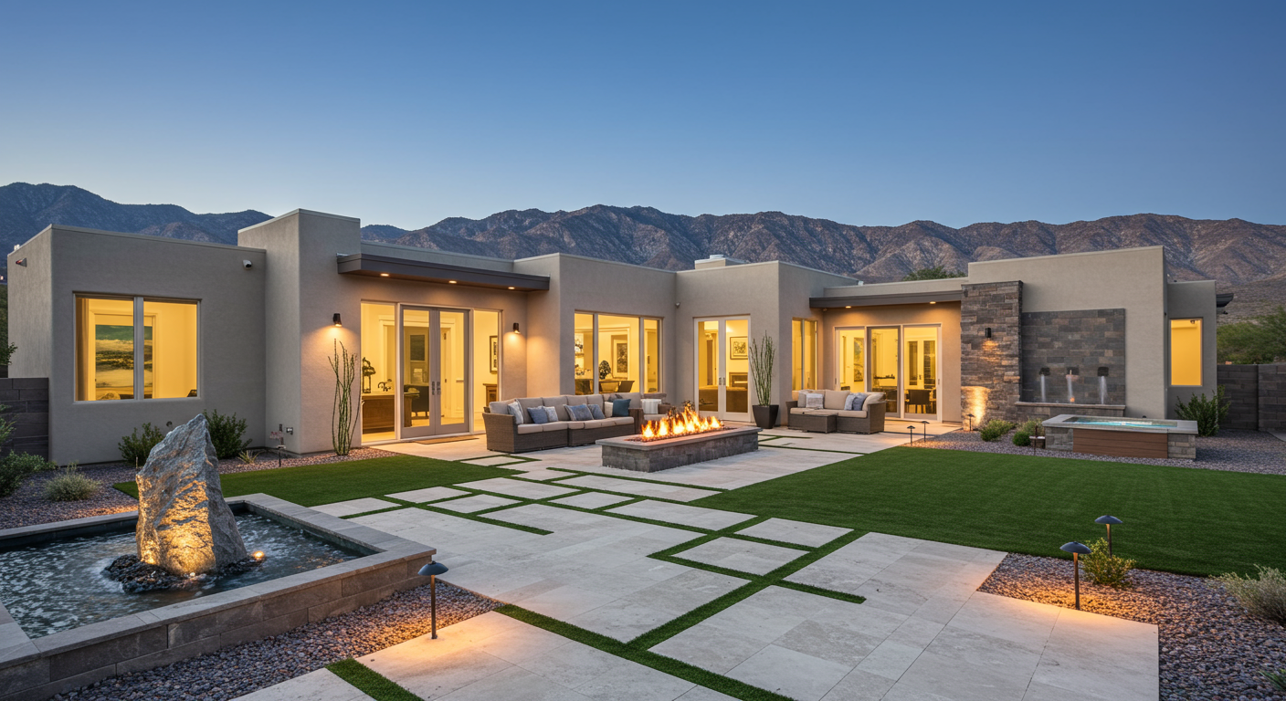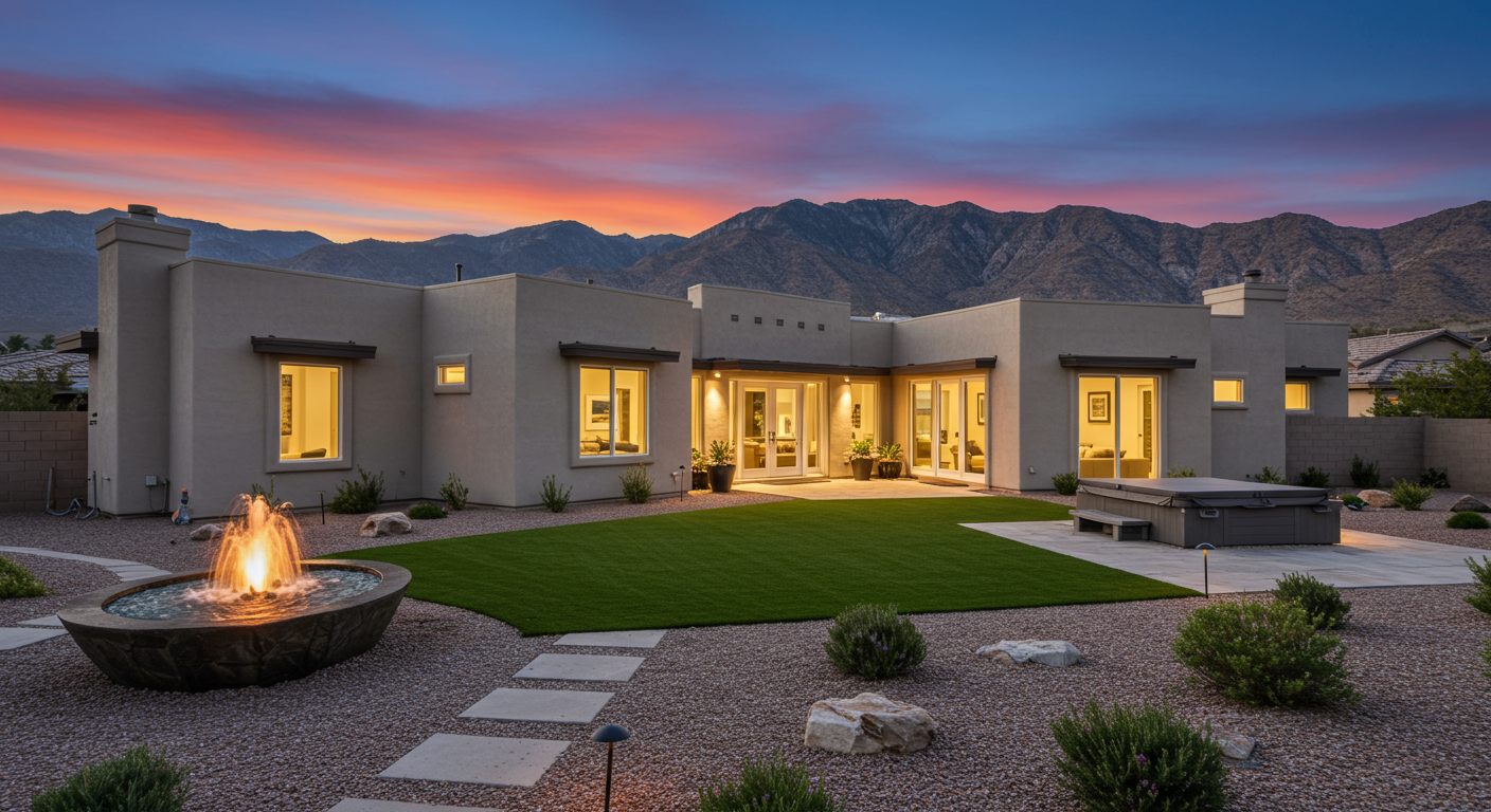 Stunning new home in Sky Crossing. This popular Patagonia model sits on an upgraded view lot with mountain views. As you enter the home you will be greeted by the soothing sounds of the fountain in the courtyard. This home has been highly upgraded. The gourmet kitchen has high-level granite, beautiful cabinetry, and glass backsplash. Bathrooms have quartz counters and lovely tile work. Spacious master bedroom with large closet and master bath. 2 secondary bedrooms, den/office, and bonus room allow for plenty of space and options. Tranquil backyard has travertine pavers, turf, glass rock firepit, lighting, and therapeutic spa. Shutters, whole home water treatment system, tinted windows, crown molding, large laundry room with sink and cabinetry, epoxy floors in garage.